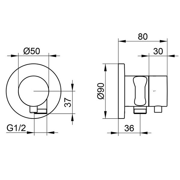 Вентиль, Keuco, IXMO, тип вентиля-запорный/переключающий, тип установки-встраиваемый, внутренняя часть-необходимо заказать, на 2 потребителя, выводом для шланга и держателем лейки, с рукояткой IXMO Comfort, цвет-хром Вентиль, Keuco, IXMO, цвет-хром