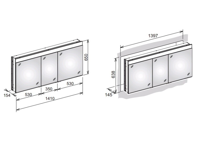 Зеркальный шкаф, Keuco, Edition 400, ширина, мм-1410, глубина, мм-154, высота, мм-650, тип установки-настенный, подсветка-с подсветкой, тип освещения-светодиодный, бесступенчатый реостат/диммер, не требуется замена ламп, тип включения-сенсорный, клавиши на корпусе зеркала, встроенная функция отдельного включения от общего выключателя в помещении, дверцы-3, открывание дверей-поворотное, двойные зеркальные дверцы из хрустального стекла, материал корпуса-алюминий, цвет корпуса-серебристый анодированный, задняя стенка зеркальная, подогрев зеркала, внутреннее оснащение-2 электрические розетки, 2*3 переставляемые по высоте стеклянные полочки, 2 ящика для мелочей со сдвижной стеклянной крышкой, подсветка внутри шкафа, амортизатор дверцы Зеркальный шкаф, Keuco, Edition 400, шгв 1410*154*650, цвет корпуса-анодированный серебристый алюминий