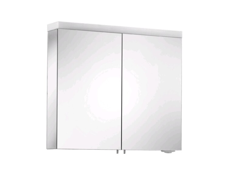 Зеркальный шкаф, Keuco, Royal Reflex 2, ширина, мм-800, глубина, мм-150, высота, мм-700, тип установки-подвесной, подсветка-с подсветкой, тип освещения-светодиодная подсветка, подсветка сверху и подсветка раковины, управление-внешняя панель управления, дверцы-есть, открывание дверей-поворотное, с хрустальным двойным зеркалом, боковины корпуса зеркальные, внутреннее оснащение-2 расположенные внутри розетки, 3 свободно регулируемые стеклянные полочки, амортизатор дверцы, внешняя панель управления с функциями-вкл / выкл, реостат/диммер, выбор освещения / 3 варианта, цвет корпуса-серебристый анодированный Зеркальный шкаф, Keuco, Royal Reflex 2, шгв 800*150*700, цвет корпуса-серебристый анодированный