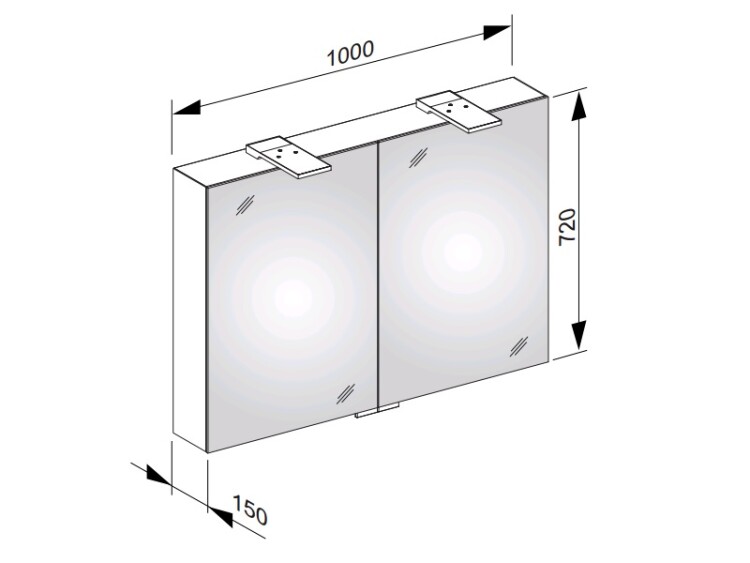 Зеркальный шкаф, Keuco, Royal 15, ширина, мм-1000, глубина, мм-150, высота, мм-720, подсветка-с подсветкой, тип освещения-светодиодная подсветка, диммер с плавной регулировкой, не требуется замена ламп, тон подсветки 3000 Кельвин (теплая белая), дверцы-есть, открывание дверей-поворотное, с двусторонним озеркаливанием. цвет корпуса-серебристый анодированный, боковины корпуса зеркальные, внешняя панель управления с функциями-вкл/выкл, диммер, выбор освещения / 3 варианта, 2 расположенные внутри розетки, 2*3 регулируемые по высоте стеклянные полочки Зеркальный шкаф, Keuco, Royal 15, шгв 1000*150*720, цвет корпуса-серебристый анодированный