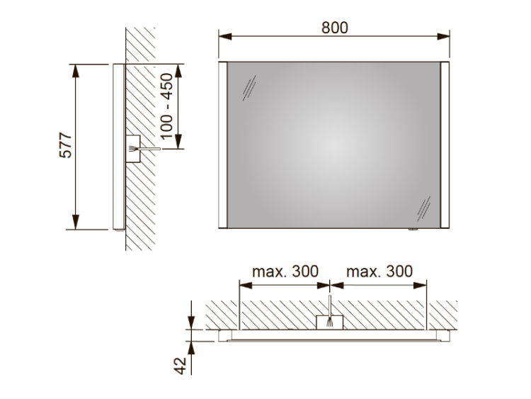 Зеркало, Keuco, Royal Reflex 2, ширина, мм-800, глубина, мм-42, высота, мм-577, тип установки-настенный, с подсветкой, тип освещения-светодиодная подсветка, внешняя панель управления с функциями: вкл/выкл, реостат/диммер, выбор освещения/3 варианта, вертикальная подсветка и подсветка раковины Зеркало, Keuco, Royal Reflex 2, шгв 800*42*577, с подсветкой
