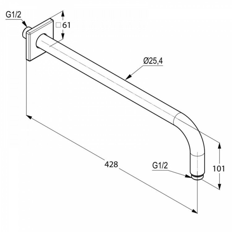 Держатель верхнего душа, Kludi, A-QA, вид-настенный, вынос, мм-400, с квадратным отражателем 61x61 мм, цвет-хром Держатель верхнего душа, Kludi, A-QA, цвет-хром