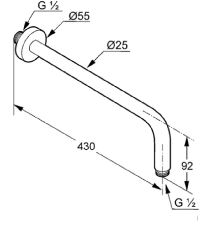 Держатель верхнего душа, Kludi, A-QA, вид-настенный, вынос, мм-400, с круглым отражателем Ø 55 мм, цвет-золото брашированное Держатель верхнего душа, Kludi, A-QA, цвет-золото брашированное