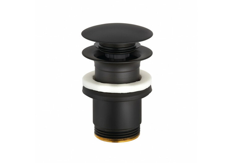 Донный клапан, Kludi, для раковин с переливом, нажимной Push-Open, 1 1/4", форма крышки-круглая, диаметр крышки, мм-63.5, материал крышки-металл, цвет-черный матовый Донный клапан, Kludi, для раковин, 1 1/4", цвет-черный матовый