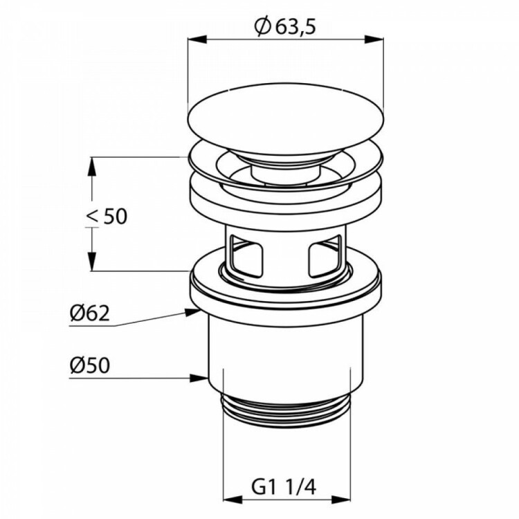 Донный клапан, Kludi, для раковин с переливом, нажимной Push-Open, 1 1/4", форма крышки-круглая, диаметр крышки, мм-63.5, материал крышки-металл, цвет-хром Донный клапан, Kludi, для раковин, 1 1/4", цвет-хром
