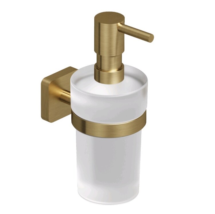 Дозатор для жидкого мыла, Kludi, VELA S, механический (нажимной), ширина, мм-72, глубина, мм-117, высота, мм-180, ёмкость(мл)-150, тип установки-настенный, материал колбы-стекло, цвет колбы-белый матовый, цвет дозатора-золото брашированное/шлифованное (Brushed Gold) Дозатор для жидкого мыла, Kludi, VELA S, шгв 72*117*180, цвет дозатора-золото брашированное/шлифованное (Brushed Gold)