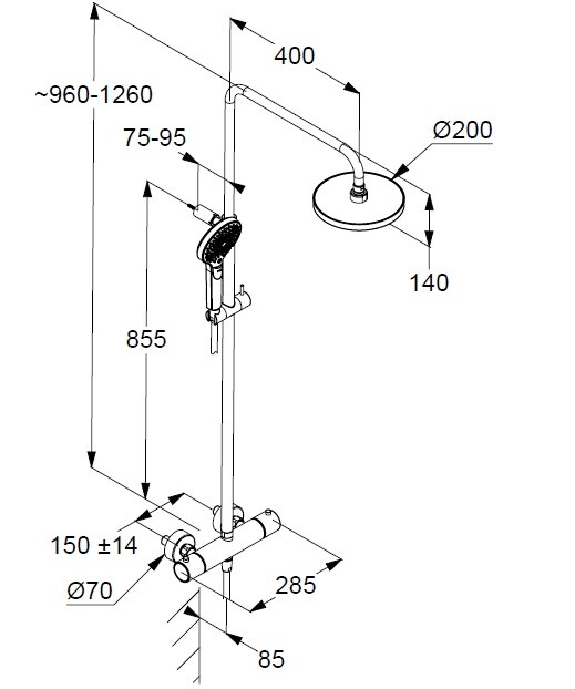 Душевая стойка, Kludi, DIVE X, смеситель-в комплекте, тип открывания воды-вентильный, тип регулирования воды-термостатический картридж, верхний душ-есть, форма верхнего душа-круглая, размер верхнего душа,мм-200, держатель верхнего душа-есть, вынос, мм-400, количество режимов верхнего душа-1, размер штанги, мм-960-1260, ручной душ-в комплекте, количество режимов ручного душа-3, Body/Hair/Skin, с кнопочным переключением, шланг-есть, размер шланга, мм-1600, цвет-черный матовый Душевая стойка, Kludi, DIVE X, цвет-черный матовый