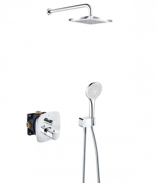 Душевой комплект, Kludi, Ameo, 5 в 1, в составе-смеситель для душа термостатический арт. 418300575, внутренняя часть FLEXX.BOXX арт. 88011, верхний душ 250*250 мм арт. 6442505-00, держатель верхнего душа арт. 6653405-00, душевой набор Freshline, 1S арт. 6787005-00, цвет-хром Душевой комплект, Kludi, Ameo, 5 в 1, цвет-хром (комплект-5 коробок)