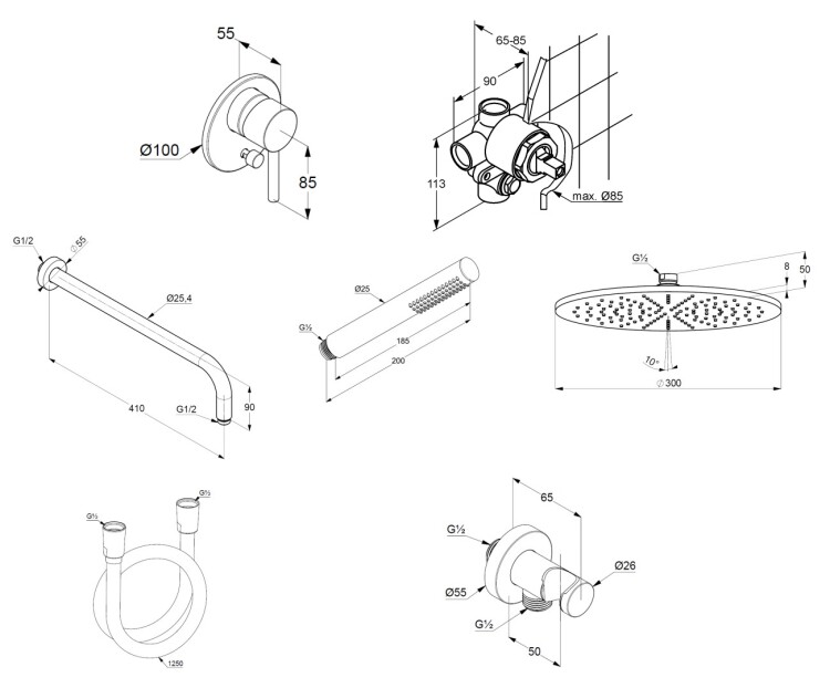 | Размер верхнего душа, мм | 300 |