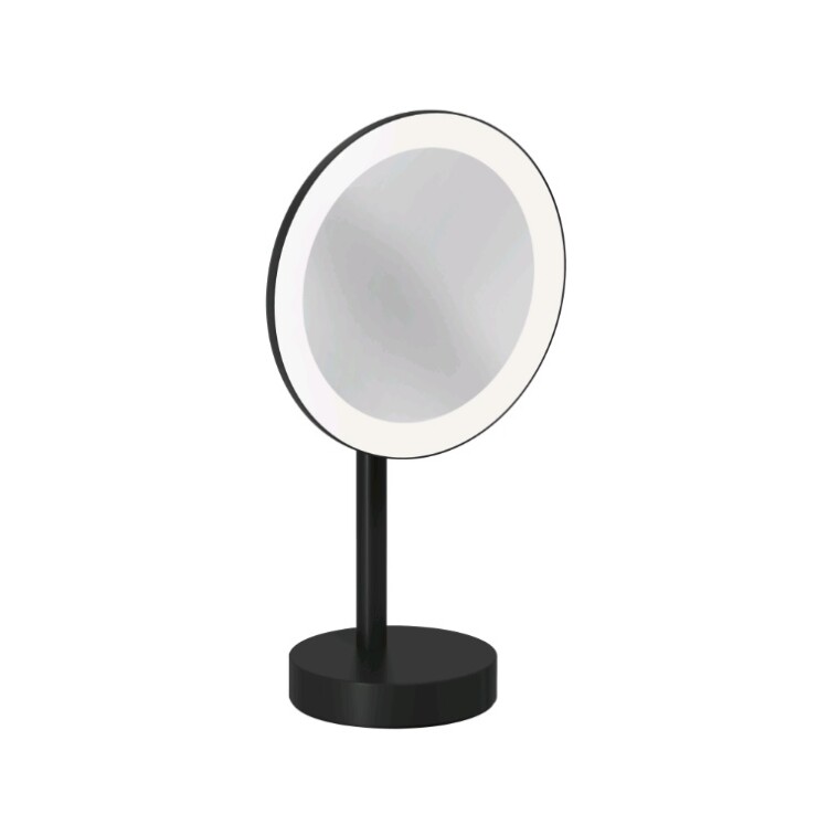 Косметическое зеркало, Kludi, VELA R, круглое, размер зеркала (ш x в), мм-202*202, высота с держателем,мм-355, тип установки-настольный (свободностоящий), с подсветкой, 2 переключателя с регулируемой цветовой температурой 3000 К или 5700 К на задней панели, увеличение, х-3 раза, материал рамы-металл, цвет-черный матовый Косметическое зеркало, Kludi, VELA R, с подсветкой, цвет-черный матовый