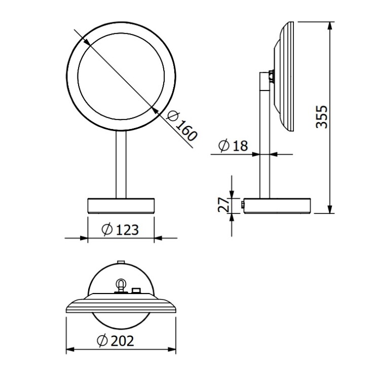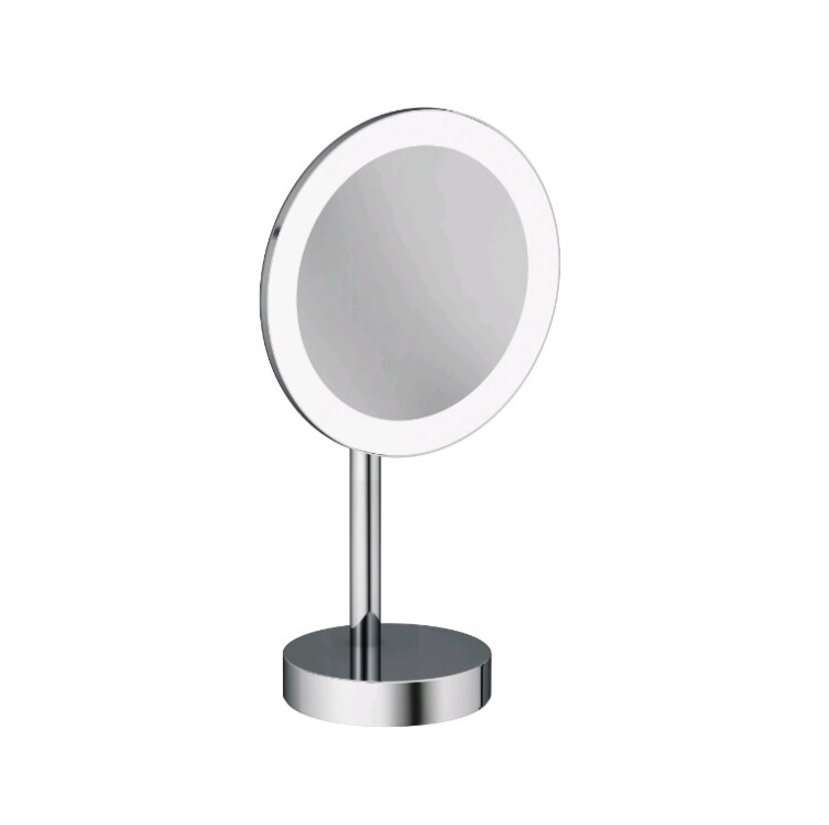 Косметическое зеркало, Kludi, VELA R, круглое, размер зеркала (ш x в), мм-202*202, высота с держателем,мм-355, тип установки-настольный (свободностоящий), с подсветкой, 2 переключателя с регулируемой цветовой температурой 3000 К или 5700 К на задней панели, увеличение, х-3 раза, материал рамы-металл, цвет-хром Косметическое зеркало, Kludi, VELA R, с подсветкой, цвет-хром