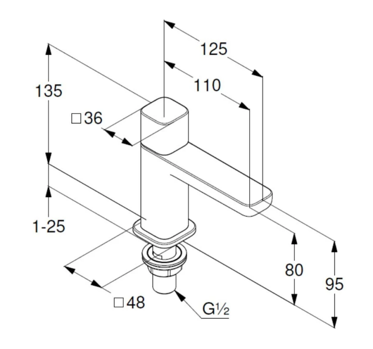 Кран для воды, Kludi, Renon, тип открывания воды-вентильный, тип регулирования воды-керамическая кран-букса, монтаж-на раковину/столешницу, отверстия для монтажа-1, высота, мм-135, вынос излива, мм-110, тип подводки-гибкая, стандарт подвода воды-1/2", цвет-белый матовый Кран для воды, Kludi, Renon, цвет-белый матовый