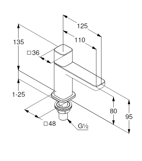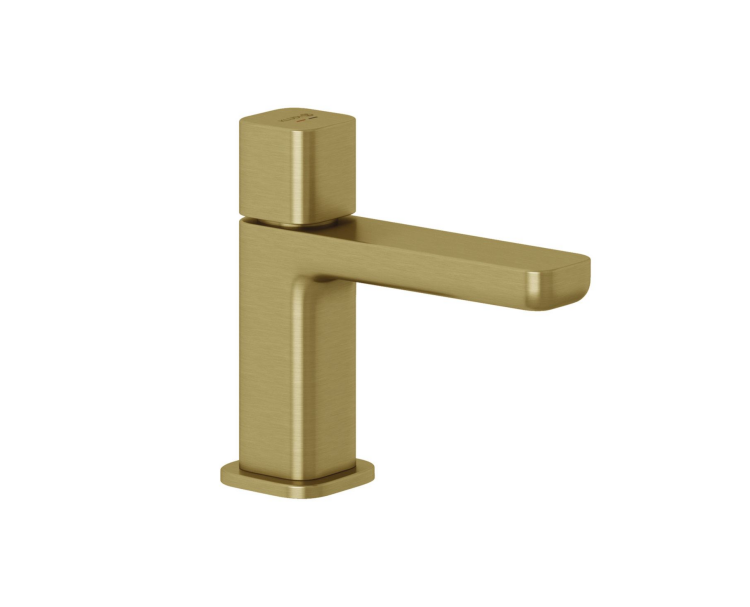 Кран для воды, Kludi, Renon, тип открывания воды-вентильный, тип регулирования воды-керамическая кран-букса, монтаж-на раковину/столешницу, отверстия для монтажа-1, высота, мм-135, вынос излива, мм-110, тип подводки-гибкая, стандарт подвода воды-1/2", без соединительного шланга, цвет-золото брашированное Кран для воды, Kludi, Renon, цвет-золото брашированное