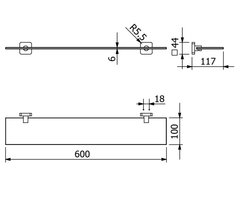 Полка, Kludi, VELA S, прямоугольная, одноярусная, ширина, мм-600, глубина, мм-117, высота, мм-44, тип установки-настенный, материал-стекло, крепления в комплекте, цвет-черный матовый (Matt Black, Nero Opaco) Полка, Kludi, VELA S, шгв 600*117*44, цвет-черный матовый (Matt Black, Nero Opaco)