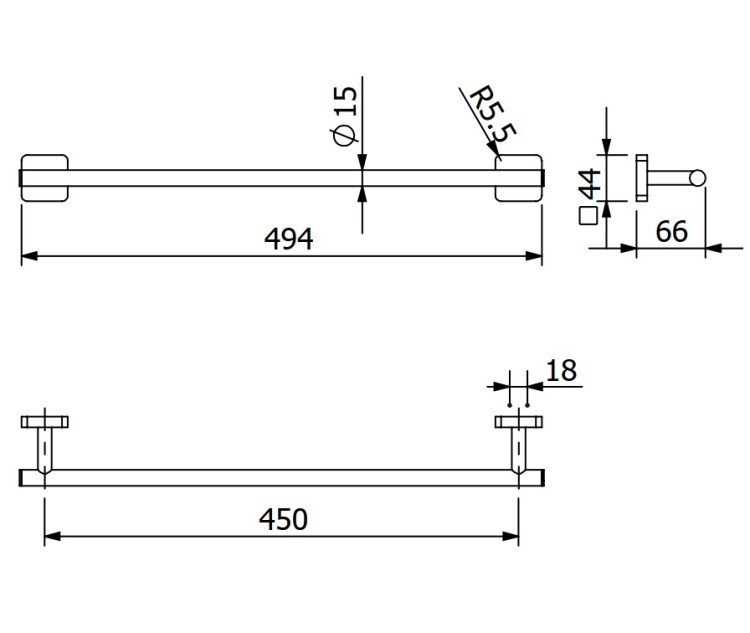 Полотенцедержатель, Kludi, VELA S, одинарный, ширина, мм-450, глубина, мм-66, высота, мм-44, тип установки-настенный, материал-металл, крепления в комплекте, цвет-хром Полотенцедержатель, Kludi, VELA S, шгв 450*66*44, цвет-хром