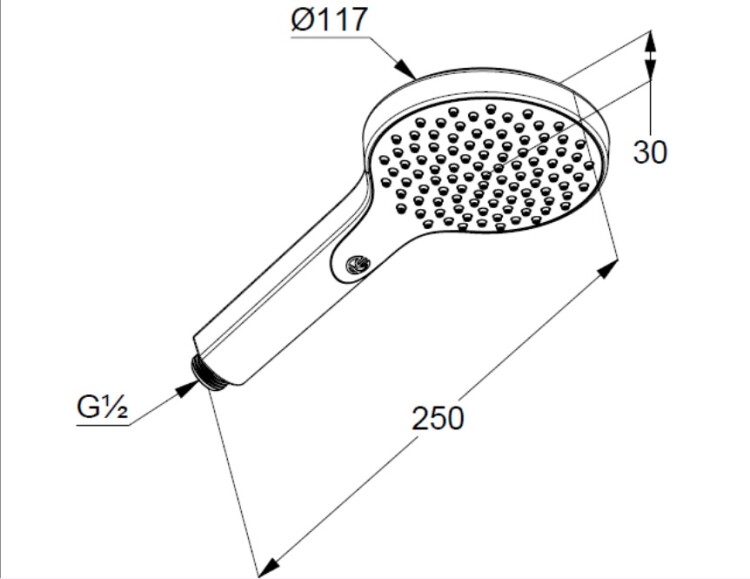 Ручной душ, Kludi, DIVE X, 1S, размер душевого диска, мм-117, форма-круглая, количество режимов-1, тип струи-бодрящая, резьбовое соединение G 1/2, прокладка с сеточкой, цвет-хром Ручной душ, Kludi, DIVE X, 1S, 117, цвет-хром