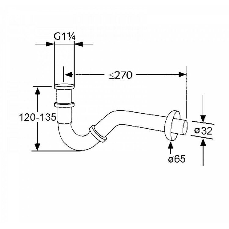 Сифон, Kludi, трубный, 1 1/4" х 32, отводная дуга 200 мм с отражателем, цвет-хром Сифон, Kludi, трубный, 1 1/4" х 32, цвет-хром