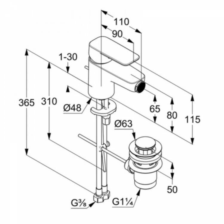 Смеситель для биде, Kludi, Pure&Style, тип открывания воды-однорычажный, тип регулирования воды-керамический картридж, отверстия для монтажа-1, высота, мм-115, вынос излива, мм-110, донный клапан-есть, тип подводки-гибкая, стандарт подвода воды-3/8", цвет-хром Смеситель для биде, Kludi, Pure&Style, цвет-хром