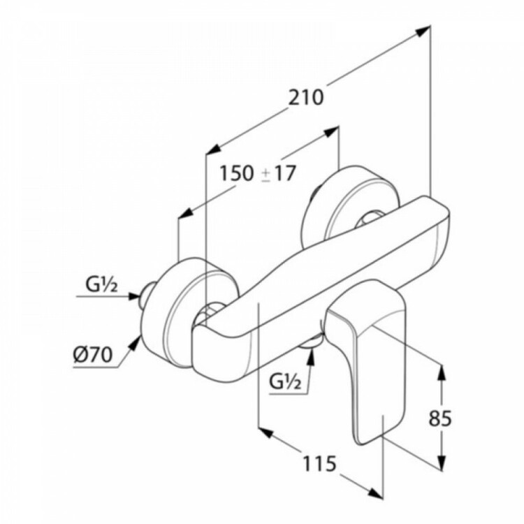 Смеситель для душа, Kludi, Ameo, тип открывания воды-однорычажный, тип регулирования воды-керамический картридж, монтаж-настенный, отверстия для монтажа-2, отвод для душа G 1/2, цвет-хром Смеситель для душа, Kludi, Ameo, цвет-хром