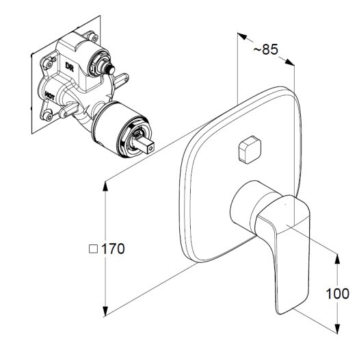 Смеситель для душа, Kludi, Ameo, тип открывания воды-однорычажный, тип регулирования воды-керамический картридж, монтаж-настенный встраиваемый, отверстия для монтажа-1, автоматический переключатель душ/ванна, внутренняя часть-необходимо заказать, цвет-хром Смеситель для душа, Kludi, Ameo, цвет-хром