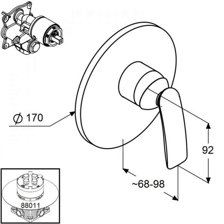 Смеситель для душа, Kludi, Balance, тип открывания воды-однорычажный, тип регулирования воды-керамический картридж, монтаж-настенный встраиваемый, отверстия для монтажа-1, внутренняя часть-необходимо заказать, цвет-хром Смеситель для душа, Kludi, Balance, цвет-хром