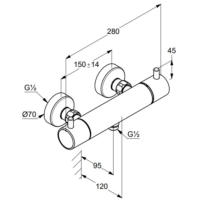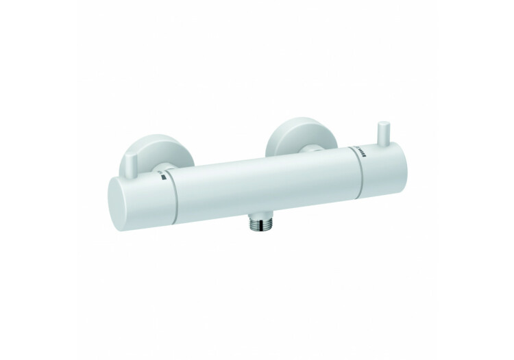 Смеситель для душа, Kludi, BOZZ, тип открывания воды-вентильный, тип регулирования воды-термостатический картридж, монтаж-настенный, отверстия для монтажа-2, отвод для душа G 1/2, цвет-белый матовый Смеситель для душа, Kludi, BOZZ, цвет-белый матовый