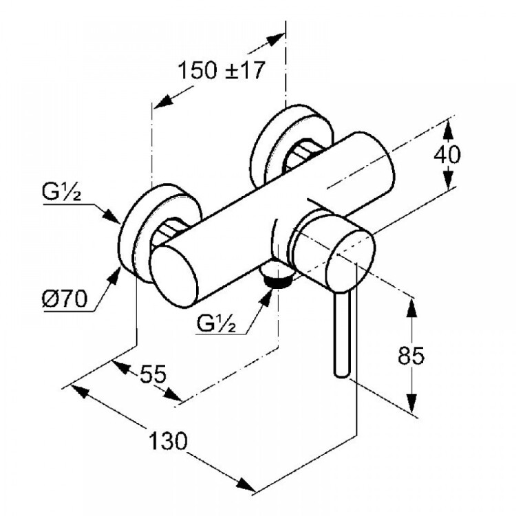 Смеситель для душа, Kludi, BOZZ, тип открывания воды-однорычажный, тип регулирования воды-керамический картридж, монтаж-настенный, отверстия для монтажа-2, отвод для душа G 1/2, цвет-черный матовый Смеситель для душа, Kludi, BOZZ, цвет-черный матовый