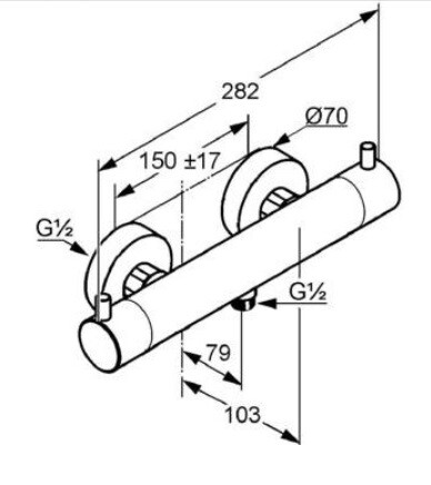 Смеситель для душа, Kludi, BOZZ, тип открывания воды-вентильный, тип регулирования воды-термостатический картридж, монтаж-настенный, отверстия для монтажа-2, цвет-хром Смеситель для душа, Kludi, BOZZ, цвет-хром