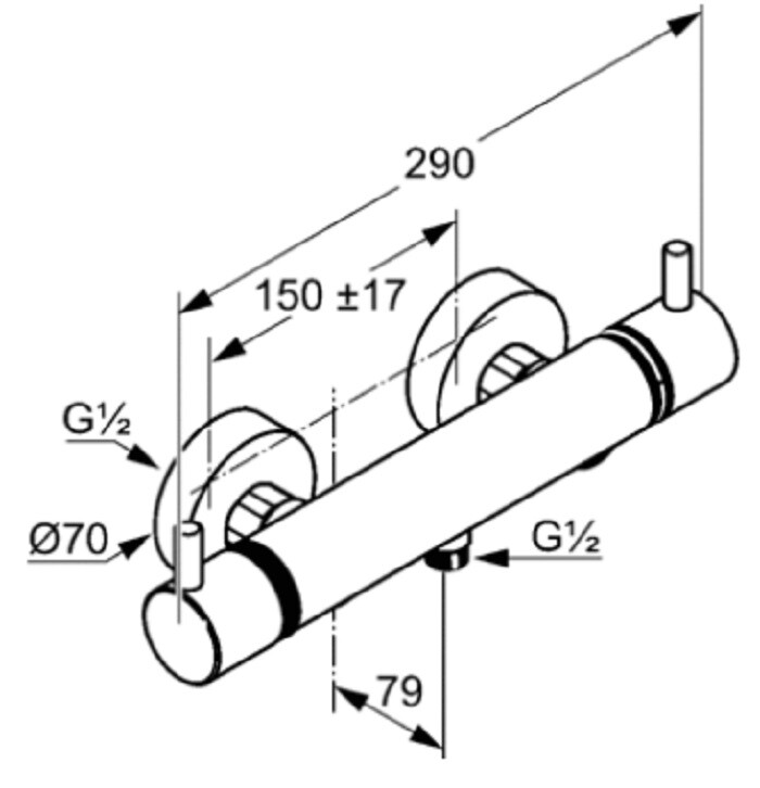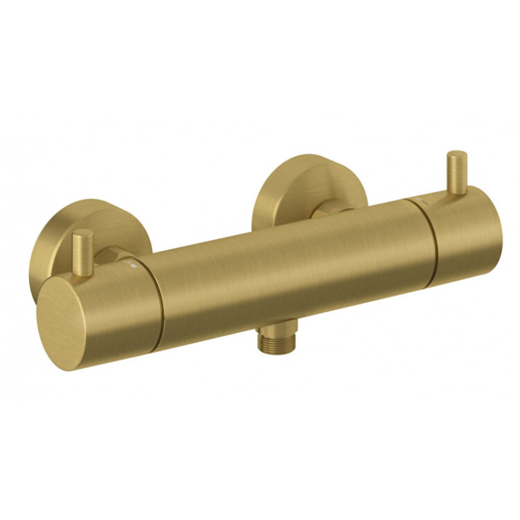 Смеситель для душа, Kludi, BOZZ, тип открывания воды-вентильный, тип регулирования воды-термостатический картридж, монтаж-настенный, отверстия для монтажа-2, цвет-золото брашированное Смеситель для душа, Kludi, BOZZ, цвет-золото брашированное