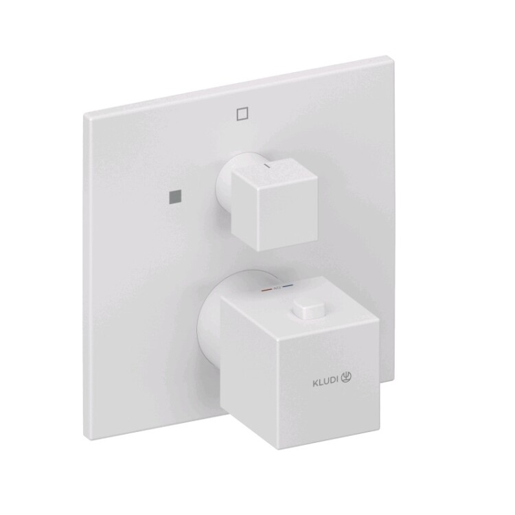 Смеситель для душа, Kludi, DECUS, на 1 потребитель, тип открывания воды-однорычажный, тип регулирования воды-термостатический картридж, монтаж-настенный встраиваемый, отверстия для монтажа-1, керамический запорный вентиль, внутренняя часть-необходимо заказать, цвет-белый матовый (Matt White, Bianco Opaco) Смеситель для душа, Kludi, DECUS, на 1 потребитель, цвет-белый матовый (Matt White, Bianco Opaco)