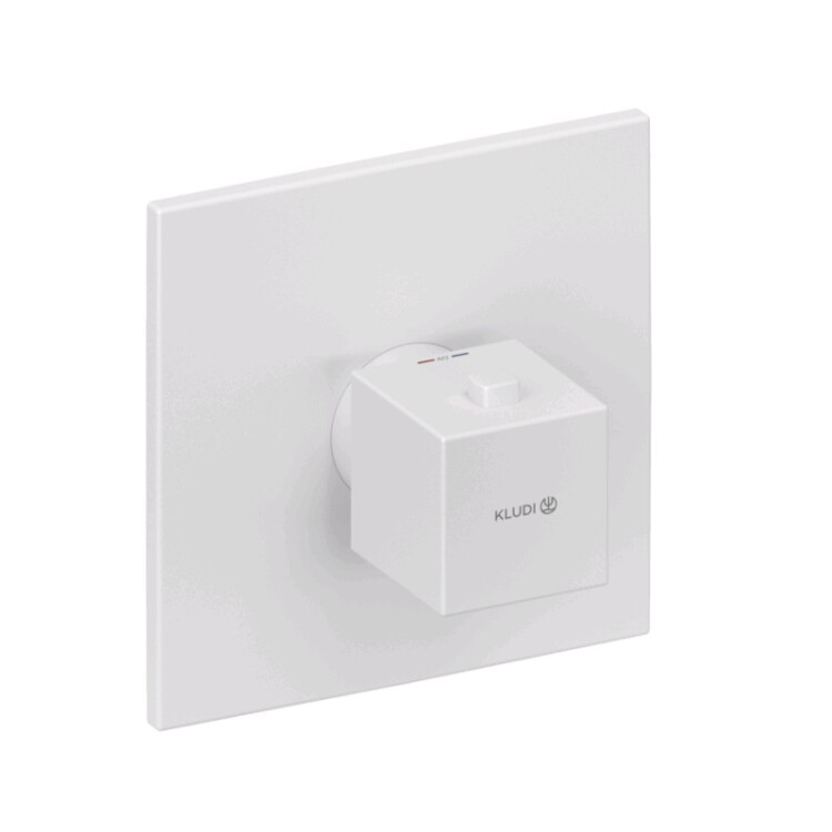 Смеситель для душа, Kludi, DECUS, на 1 потребитель, тип открывания воды-однорычажный, рукоятка -цилиндрическая, тип регулирования воды-термостатический картридж, рукоятка выбора температуры с ограничителем горячей воды при 40 °C, монтаж-настенный встраиваемый, отверстия для монтажа-1, без запорного вентиля, внутренняя часть-необходимо заказать, цвет-белый матовый (Matt White, Bianco Opaco) Смеситель для душа, Kludi, DECUS, на 1 потребитель, цвет-белый матовый (Matt White, Bianco Opaco)