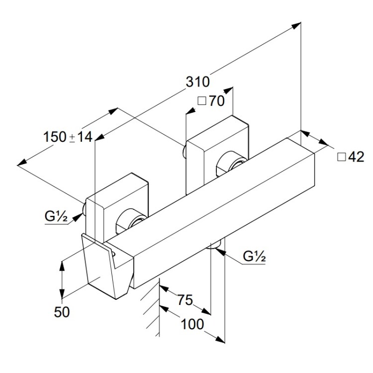 Смеситель для душа, Kludi, DECUS, на 2 потребителя, тип открывания воды-однорычажный, рукоятка-литой рычаг, тип регулирования воды-керамический картридж, монтаж-настенный, отверстия для монтажа-2, отвод для душа G 1/2, эксцентрики G 1/2 x G 3/4, цвет-хром Смеситель для душа, Kludi, DECUS, на 2 потребителя, цвет-хром