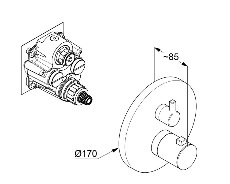Смеситель для душа, Kludi, Nova Fonte Puristic, тип открывания воды-вентильный, тип регулирования воды-термостатический картридж, монтаж-настенный встраиваемый, отверстия для монтажа-1, с переключателем ванна/душ, внутренняя часть-необходимо заказать, цвет-белый матовый Смеситель для душа, Kludi, Nova Fonte Puristic, цвет-белый матовый