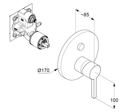 Смеситель для душа, Kludi, Nova Fonte Puristic, тип открывания воды-однорычажный, тип регулирования воды-керамический картридж, монтаж-настенный встраиваемый, отверстия для монтажа-1, внутренняя часть-необходимо заказать, автоматический переключатель душ/ванна PUSH&SWITCH, цвет-белый матовый Смеситель для душа, Kludi, Nova Fonte Puristic, цвет-белый матовый
