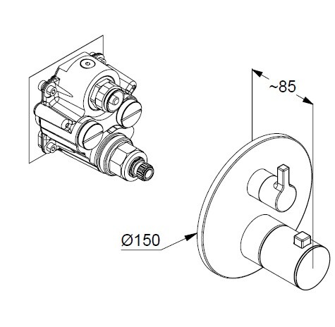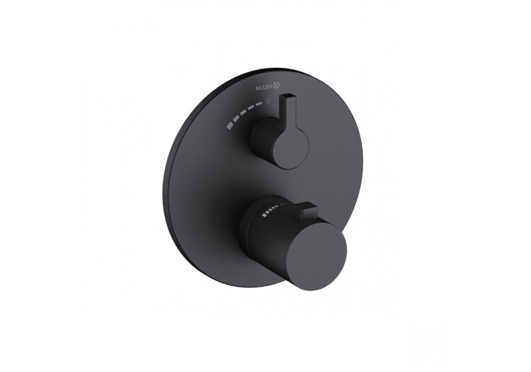 Смеситель для душа, Kludi, Nova Fonte Puristic, на 1 потребитель, тип открывания воды-вентильный, тип регулирования воды-термостатический картридж, монтаж-настенный встраиваемый, отверстия для монтажа-1, внутренняя часть-необходимо заказать, цвет-черный матовый Смеситель для душа, Kludi, Nova Fonte Puristic, на 1 потребитель, цвет-черный матовый