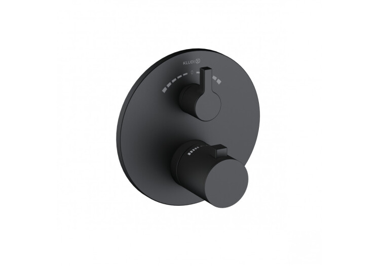 Смеситель для душа, Kludi, Nova Fonte Puristic, на 2 потребителя, тип открывания воды-вентильный, тип регулирования воды-термостатический картридж, монтаж-настенный встраиваемый, отверстия для монтажа-1, внутренняя часть-необходимо заказать, переключатель ванна/душ, цвет-черный матовый Смеситель для душа, Kludi, Nova Fonte Puristic, на 2 потребителя, цвет-черный матовый