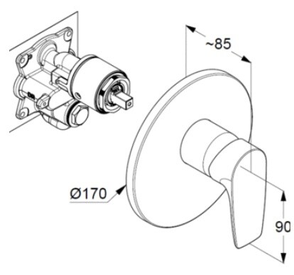 Смеситель для душа, Kludi, Pure&Solid, тип открывания воды-однорычажный, тип регулирования воды-керамический картридж, монтаж-настенный встраиваемый, отверстия для монтажа-1, внутренняя часть-необходимо заказать, цвет-хром Смеситель для душа, Kludi, Pure&Solid, цвет-хром