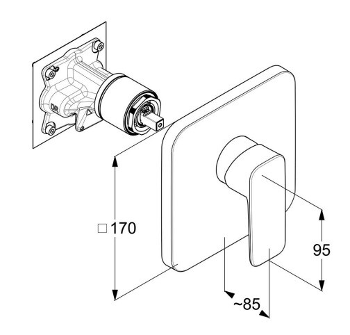 Смеситель для душа, Kludi, Pure&Style, тип открывания воды-однорычажный, тип регулирования воды-керамический картридж, монтаж-настенный встраиваемый, отверстия для монтажа-1, внутренняя часть-необходимо заказать, цвет-черный матовый Смеситель для душа, Kludi, Pure&Style, цвет-черный матовый