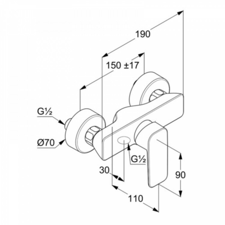 Смеситель для душа, Kludi, Pure&Style, тип открывания воды-однорычажный, тип регулирования воды-керамический картридж, монтаж-настенный, отверстия для монтажа-2, отвод для душа G 1/2, цвет-хром Смеситель для душа, Kludi, Pure&Style, цвет-хром