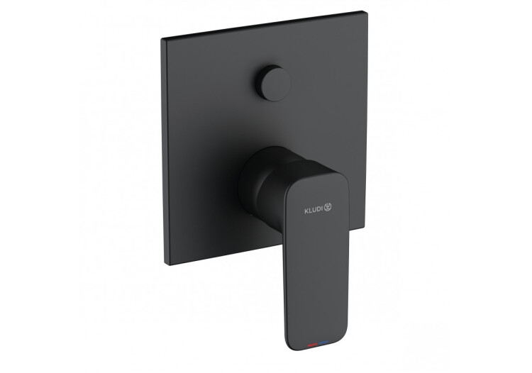 Смеситель для душа, Kludi, Pure&Style, на 2 потребителя, тип открывания воды-однорычажный, тип регулирования воды-керамический картридж, монтаж-настенный встраиваемый, отверстия для монтажа-1, внутренняя часть-необходимо заказать, автоматический переключатель душ/ванна PUSH&SWITCH, цвет-черный матовый Смеситель для душа, Kludi, Pure&Style, на 2 потребителя, цвет-черный матовый