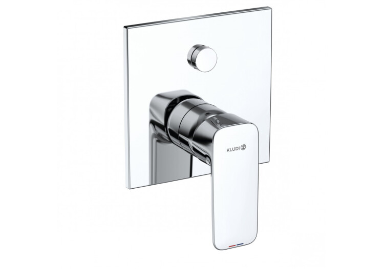 Смеситель для душа, Kludi, Pure&Style, на 2 потребителя, тип открывания воды-однорычажный, тип регулирования воды-керамический картридж, монтаж-настенный встраиваемый, отверстия для монтажа-1, внутренняя часть-необходимо заказать, автоматический переключатель душ/ванна PUSH&SWITCH, цвет-хром Смеситель для душа, Kludi, Pure&Style, на 2 потребителя, цвет-хром