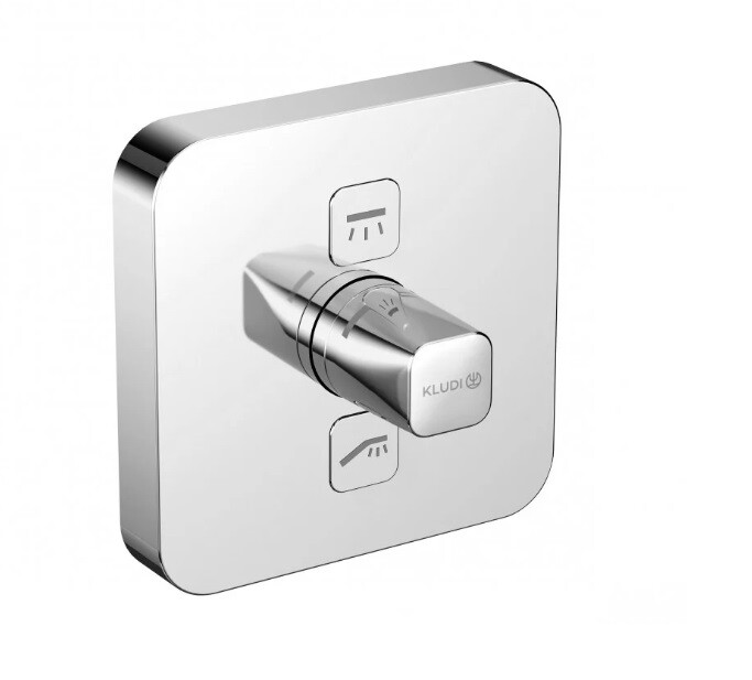 Смеситель для душа, Kludi, PUSH, тип открывания воды-нажимной (кнопки), регулировка температуры металлической рукояткой, тип регулирования воды-керамический картридж, без возможности регулировки напора струи воды, монтаж-настенный встраиваемый, отверстия для монтажа-1, внутренняя часть-необходимо заказать, цвет-хром Смеситель для душа, Kludi, PUSH, цвет-хром