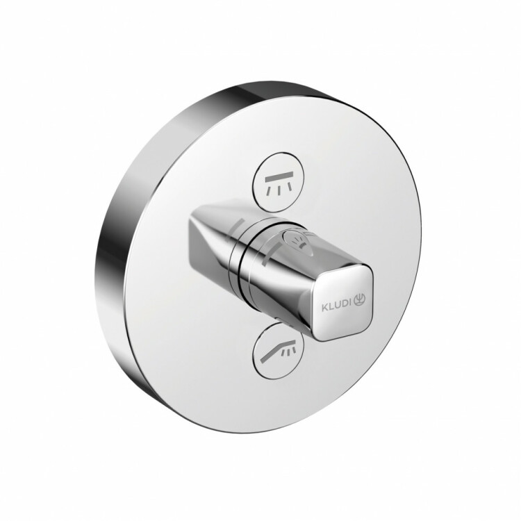 Смеситель для душа, Kludi, PUSH, форма отражателя-круг, тип открывания воды-нажимной (кнопки), возможность одновременного включения двух источников, тип регулирования воды-керамический картридж, монтаж-настенный встраиваемый, отверстия для монтажа-1, регулировка темпиратуры металлической рукояткой, без возможности регулировки напора, внутренняя часть-необходимо заказать, цвет-хром Смеситель для душа, Kludi, PUSH, цвет-хром