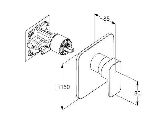 Смеситель для душа, Kludi, Renon, тип открывания воды-однорычажный, тип регулирования воды-керамический картридж, монтаж-настенный встраиваемый, отверстия для монтажа-1, внутренняя часть-необходимо заказать, цвет-черный матовый Смеситель для душа, Kludi, Renon, цвет-черный матовый