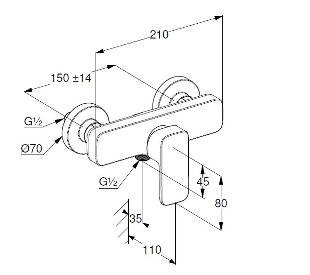 Смеситель для душа, Kludi, Renon, тип открывания воды-однорычажный, тип регулирования воды-керамический картридж, монтаж-настенный, отверстия для монтажа-2, цвет-черный матовый Смеситель для душа, Kludi, Renon, цвет-черный матовый