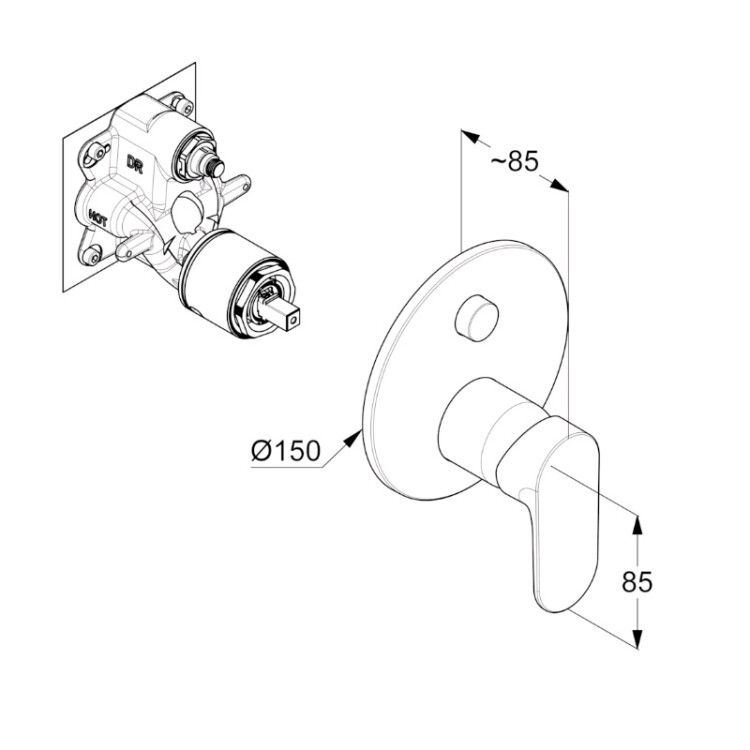 Смеситель для душа, Kludi, X1, на 2 потребителя, тип открывания воды-однорычажный, тип регулирования воды-керамический картридж, монтаж-настенный встраиваемый, отверстия для монтажа-1, внутренняя часть-необходимо заказать, цвет-чёрный матовый Смеситель для душа, Kludi, X1, на 2 потребителя, цвет-чёрный матовый