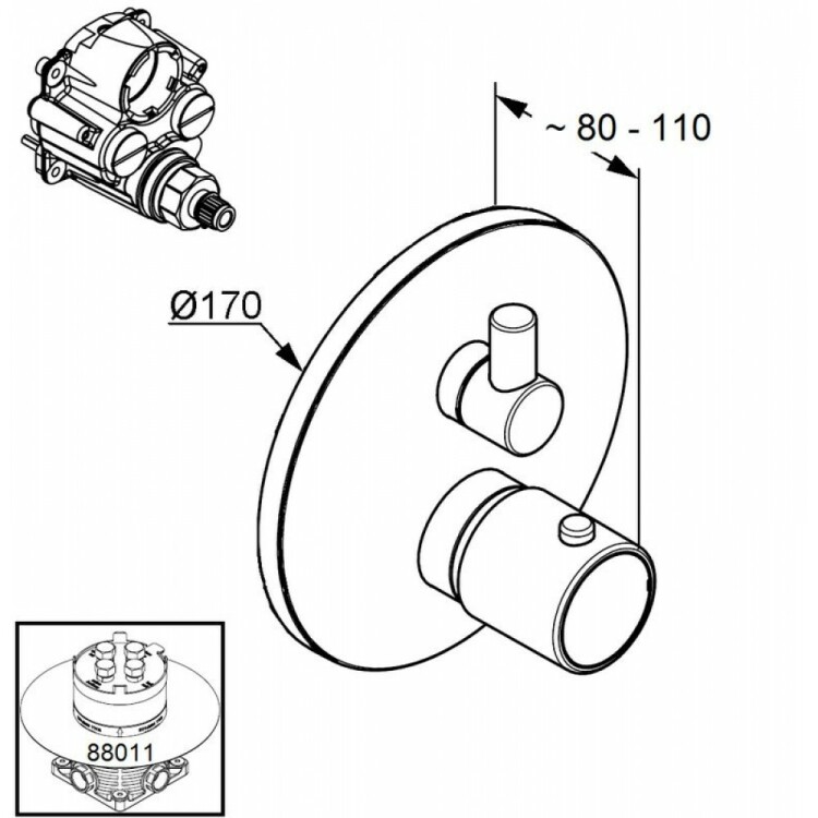Смеситель для душа, Kludi, ZENTA, тип открывания воды-вентильный, тип регулирования воды-термостатический картридж, монтаж-настенный встраиваемый, отверстия для монтажа-1, внутренняя часть-необходимо заказать, с переключателем ванна/душ, цвет-хром Смеситель для душа, Kludi, ZENTA, цвет-хром