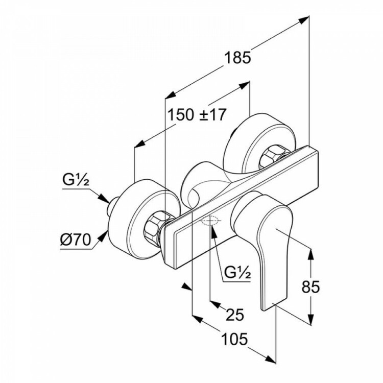 Смеситель для душа, Kludi, ZENTA SL, тип открывания воды-однорычажный, тип регулирования воды-керамический картридж, монтаж-настенный, отверстия для монтажа-2, отвод для душа G 1/2, цвет-хром Смеситель для душа, Kludi, ZENTA SL, цвет-хром