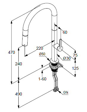 Смеситель для кухни, Kludi, AUREA, тип открывания воды-однорычажный, тип регулирования воды-керамический картридж, монтаж-на раковину/столешницу, отверстия для монтажа-1, высота, мм-470, вынос излива, мм-220, тип излива-выдвижной, поворотный, тип подводки-гибкая, стандарт подвода воды-3/8", цвет-хром Смеситель для кухни, Kludi, AUREA, цвет-хром