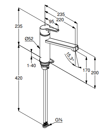 Смеситель для кухни, Kludi, M3, для безнапорных водонагревателей, тип открывания воды-однорычажный, тип регулирования воды-керамический картридж, монтаж-на раковину/столешницу, отверстия для монтажа-1, высота, мм-235, вынос излива, мм-220, тип излива-поворотный, тип подводки-гибкая, стандарт подвода воды-3/8", цвет-черный матовый Смеситель для кухни, Kludi, M3, для безнапорных водонагревателей, цвет-черный матовый
